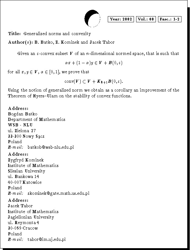 Keywords: generalized norms, convex sets, approximately convex functions