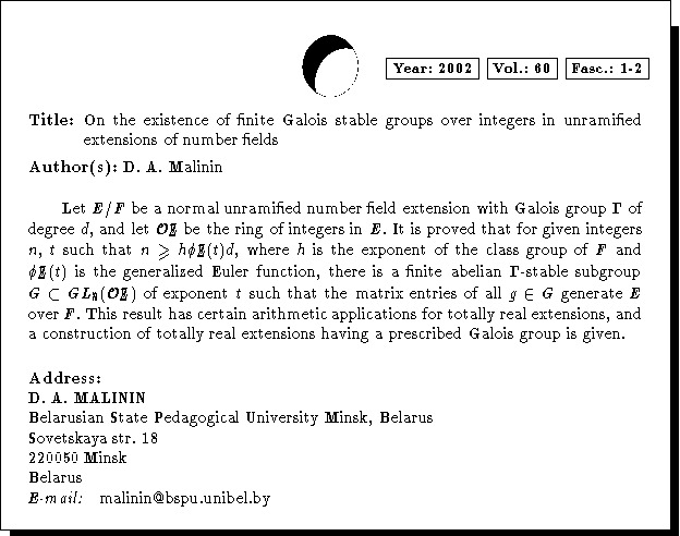 Keywords: integral representations, Galois group, algebraic integers, unramified extensions, Galois algebras