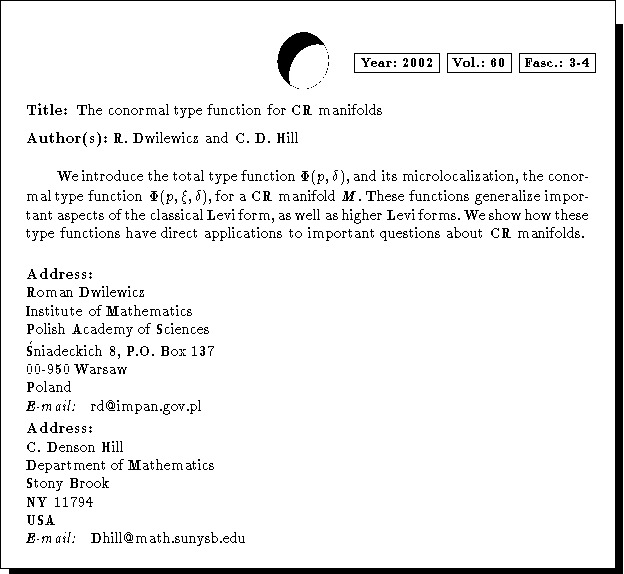 Keywords: Cauchy-Riemann manifolds, conormal type function