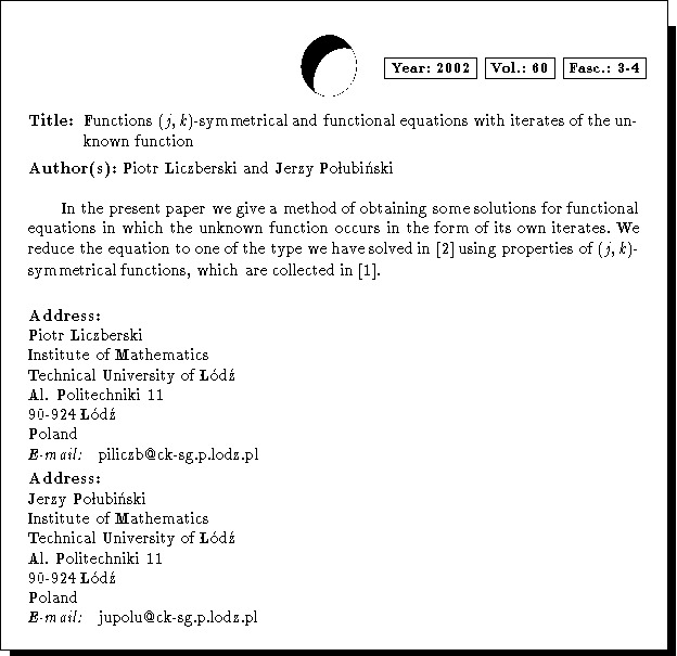 Keywords: functional equations with iterates, functions (j, k)-symmetrical