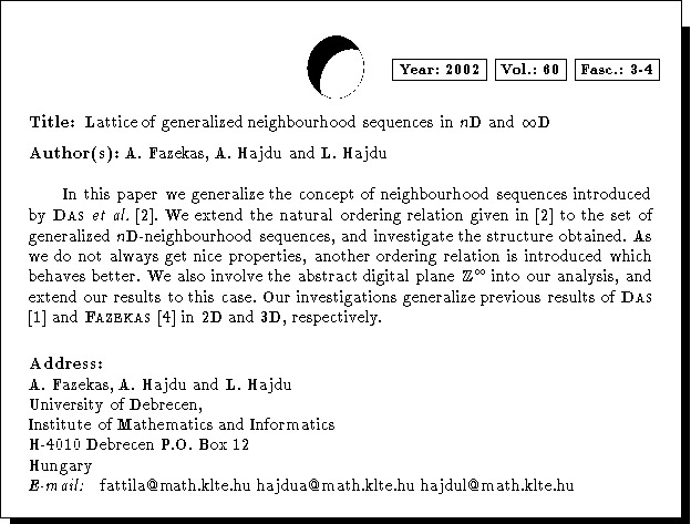 Keywords: discrete geometry, neighbourhood sequences, lattices