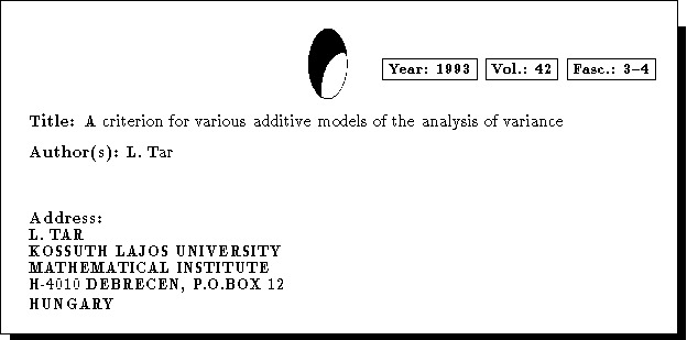 A criterion for various additive models of the analysis of variance