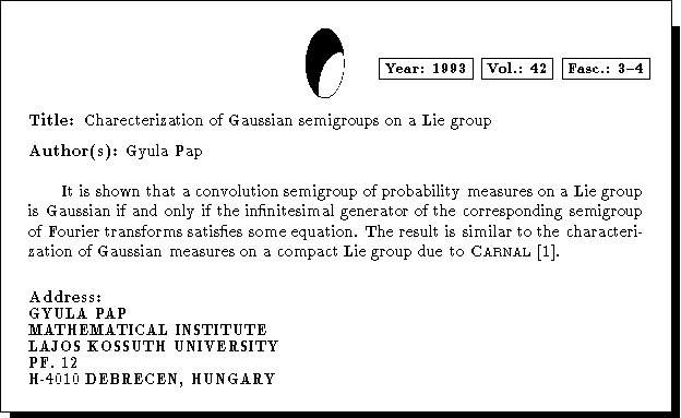 Keywords: convolution semigroup of probability measures, Gaussian semigroups, Lévy-Khinchin formula, unitary representation of groups