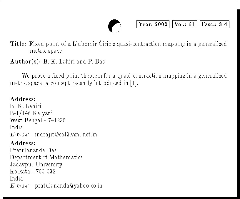 Keywords: generalized metric space, quasi-contraction mapping, fixed point