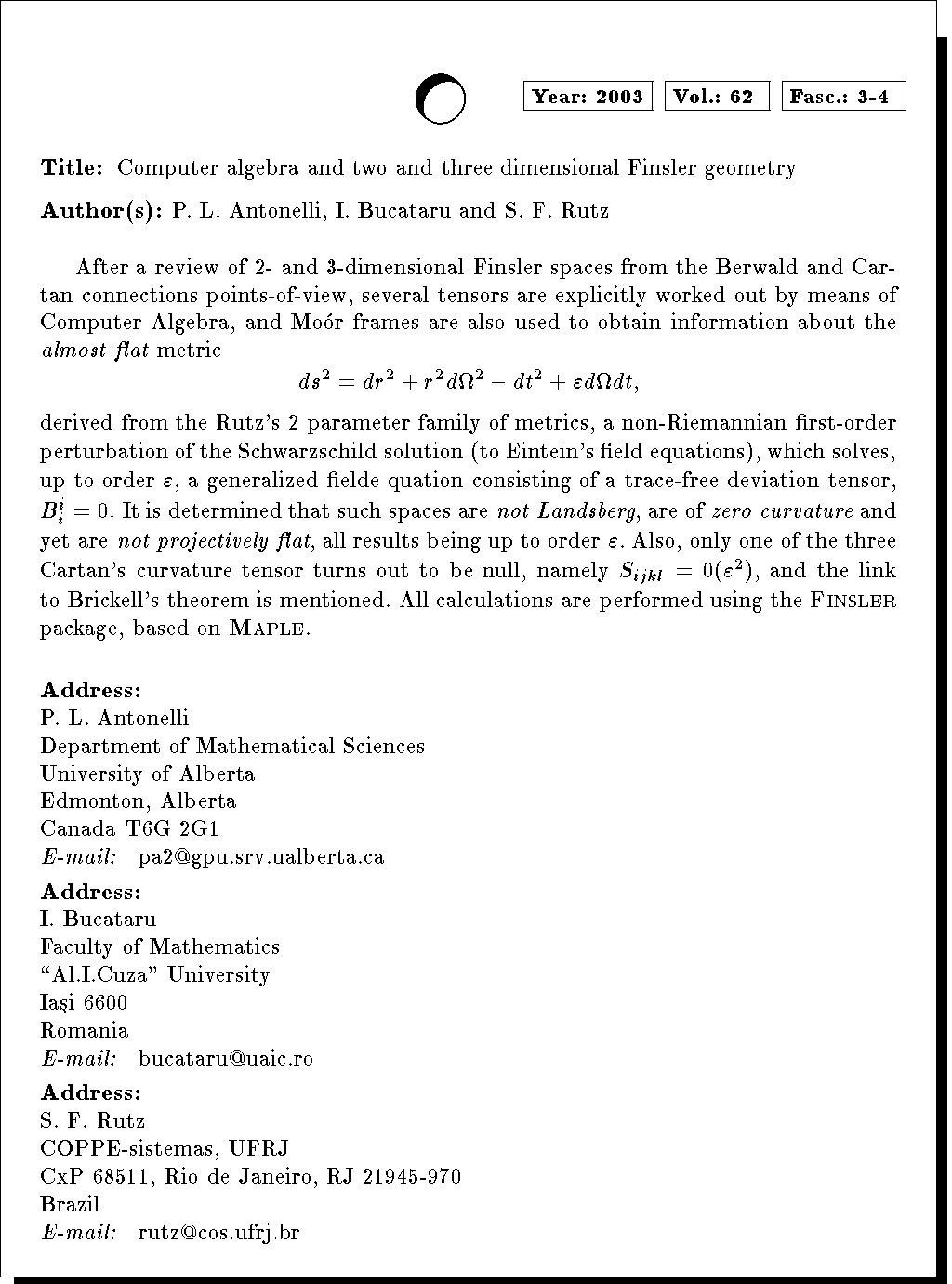 Mathematics Subject Classification: 53C60, 53B40, 13B40