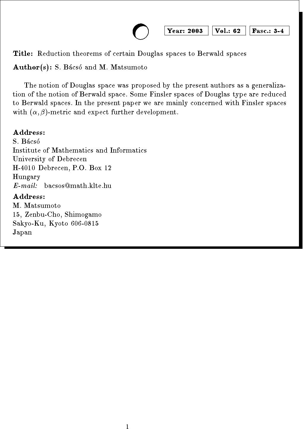 Keywords: Finsler space, Douglas space, Landsberg space, Matsumoto space, Berwald space