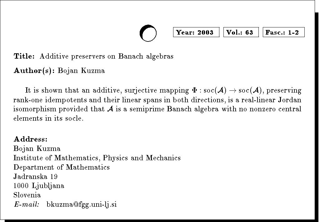 Keywords: semiprime Banach algebra, socle, rank, minimal idempotent, additive preserver