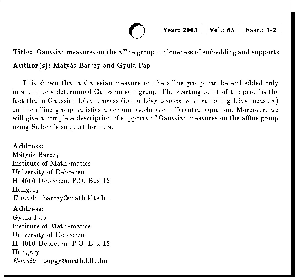 Keywords: Gaussian Lévy processes, Gaussian convolution semigroups, affine group, support of measures