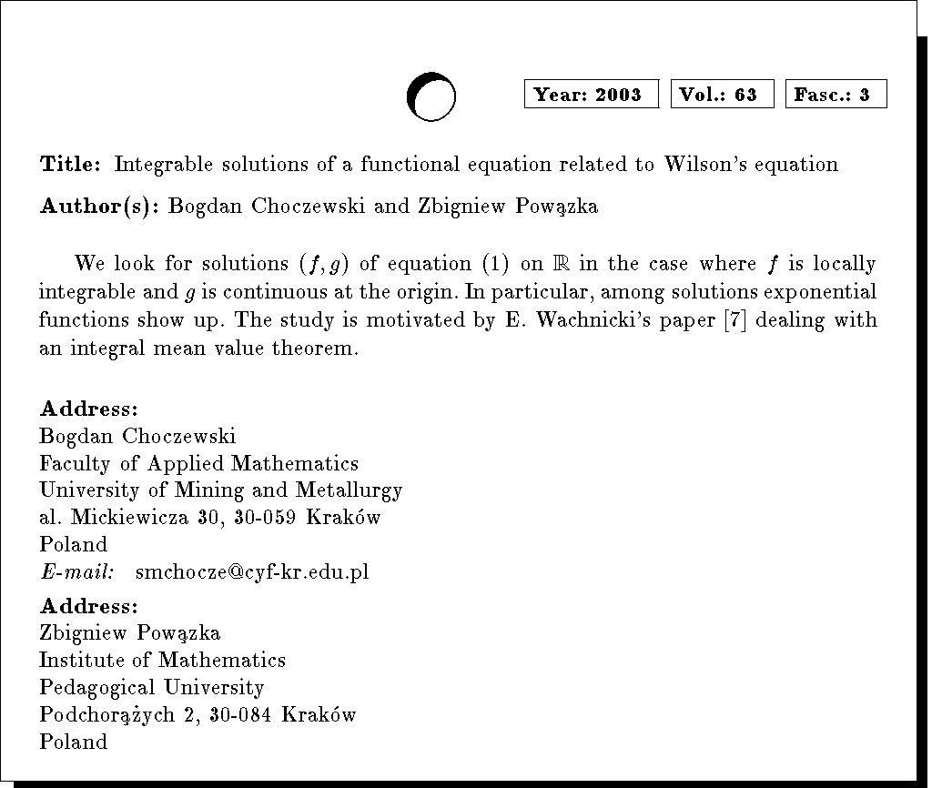 Keywords: Schröder's functional equation, Wilson's functional equation, integrable solutions