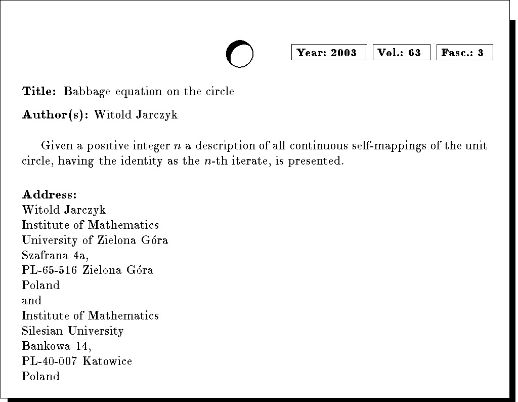 Mathematics Subject Classification: 39B12, 26A18, 58F08