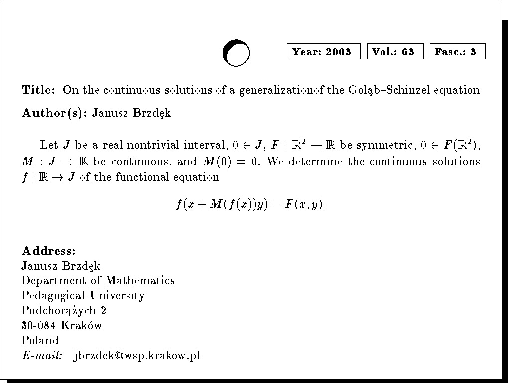 Keywords: functional equation, Gołąb-Schinzel functional equation, continuous solution