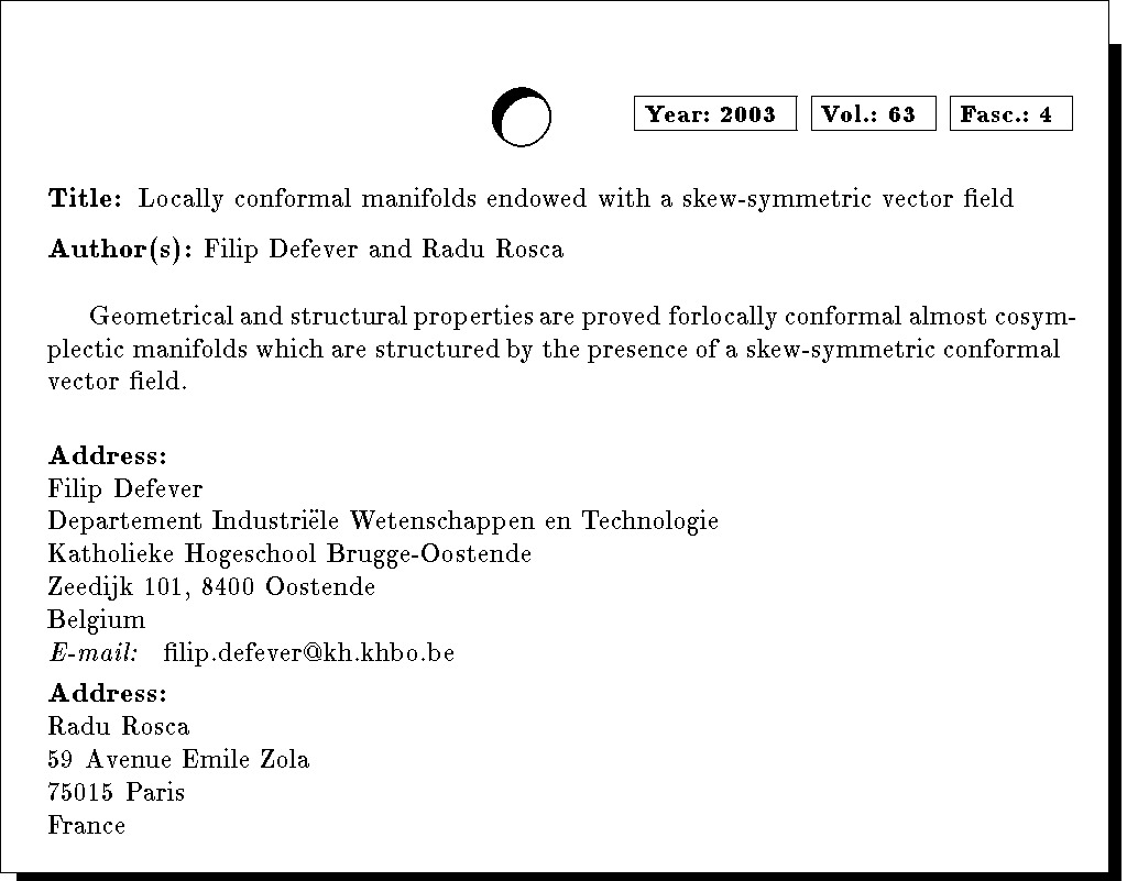 Keywords: skew-symmetric vector field, cosymplectic, Kenmotsu manifold