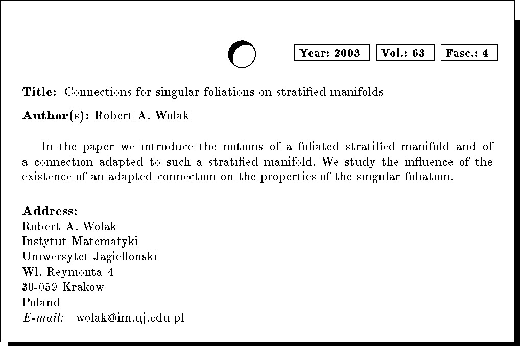 Keywords: foliation, stratification, section, connection, singular