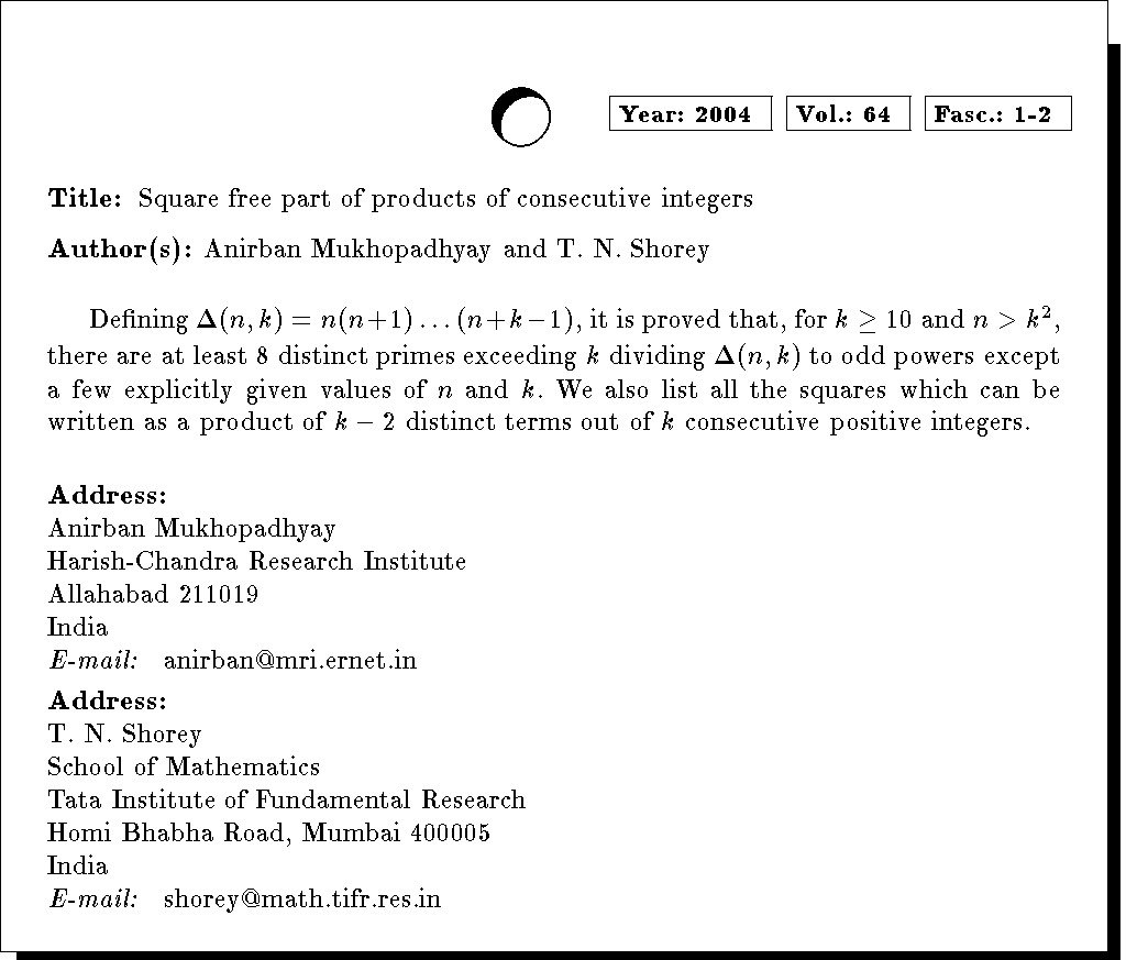 Keywords: consecutive integers, diophantine equations, elliptic equations, factorisation, primes