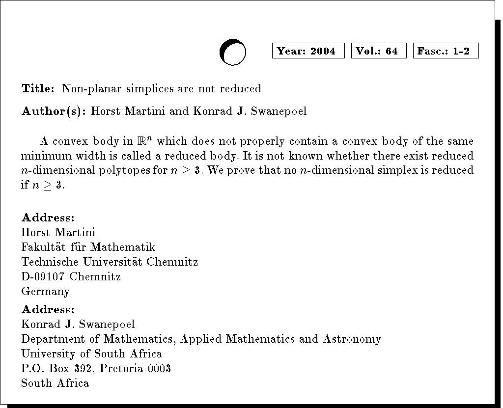 Keywords: body of constant width, convex polytope, difference body, projection body, reduced body, simplex