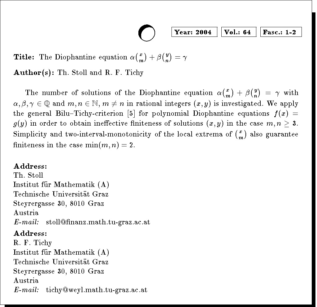 Keywords: diophantine equations, binomial coefficients, finiteness results