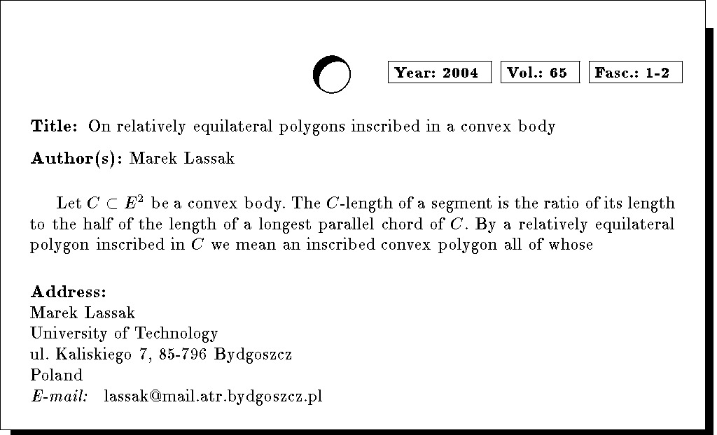 Keywords: convex body, relative distance, inscribed polygon, packing, homothetical copy