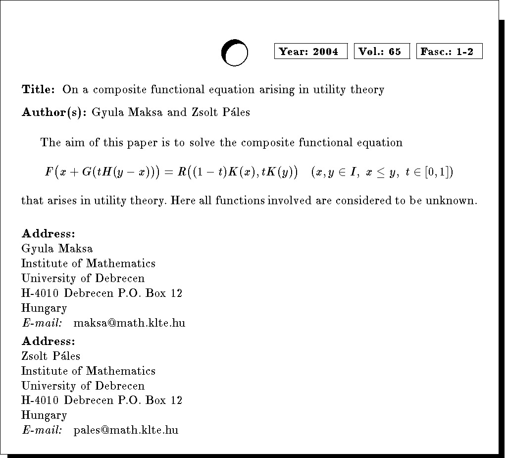 Keywords: composite functional equation, utility theory