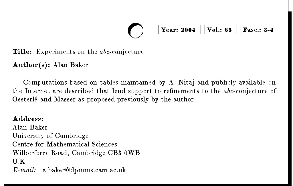 Keywords: abc-conjecture, logarithmic forms, computational results, n-dimensional tetrahedra