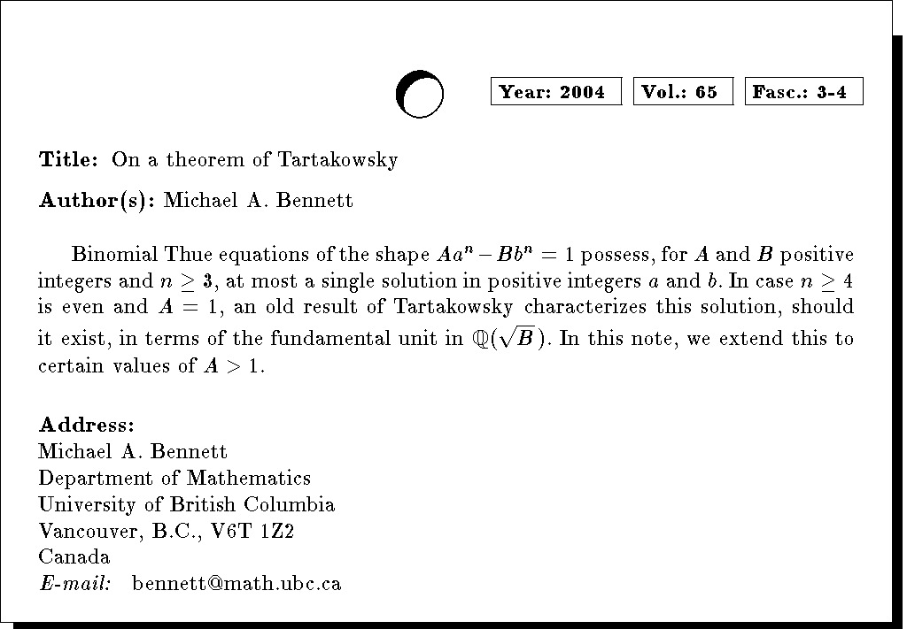 On a theorem of Tartakowsky