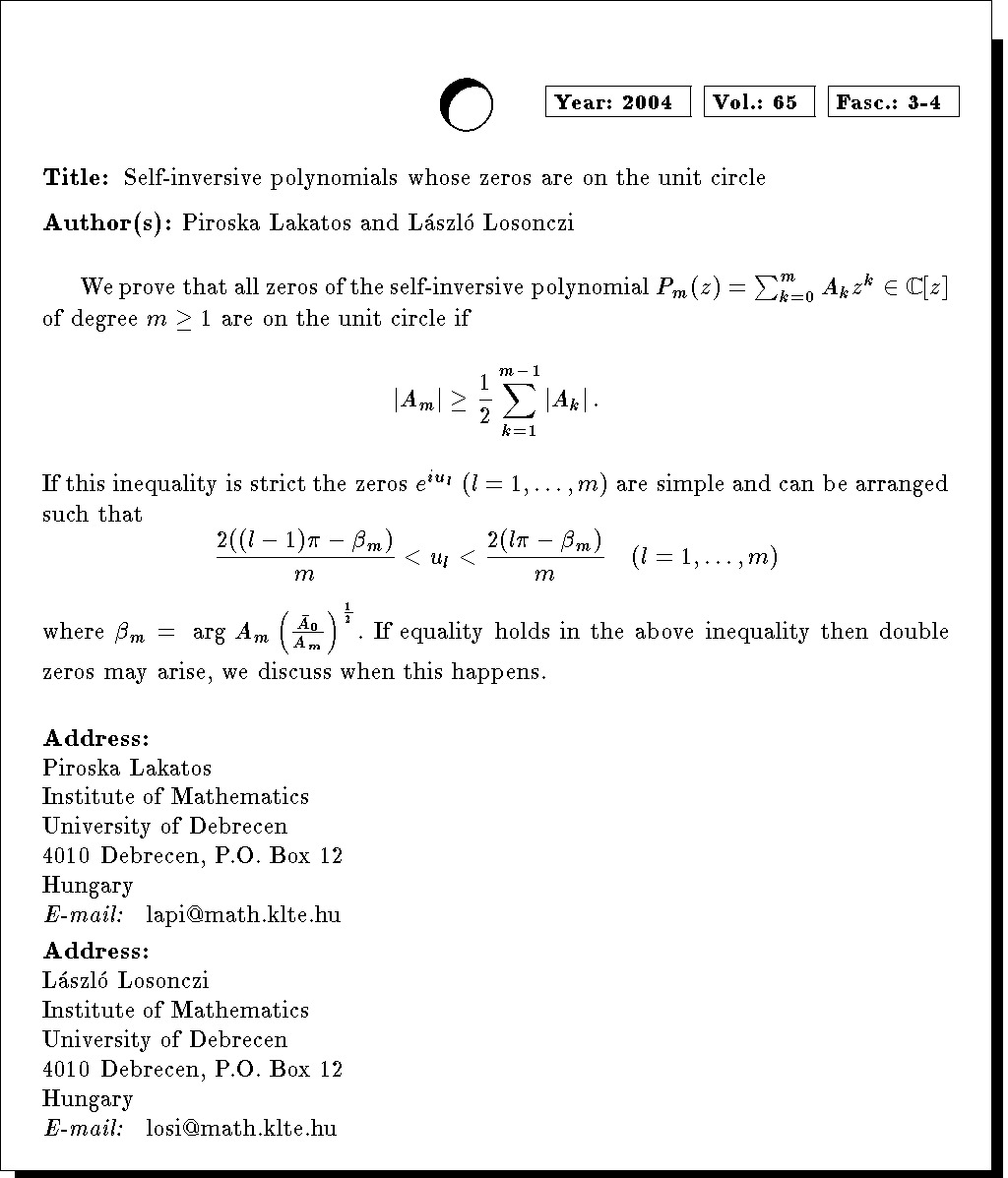 Mathematics Subject Classification: 26C10, 30C15, 30C10