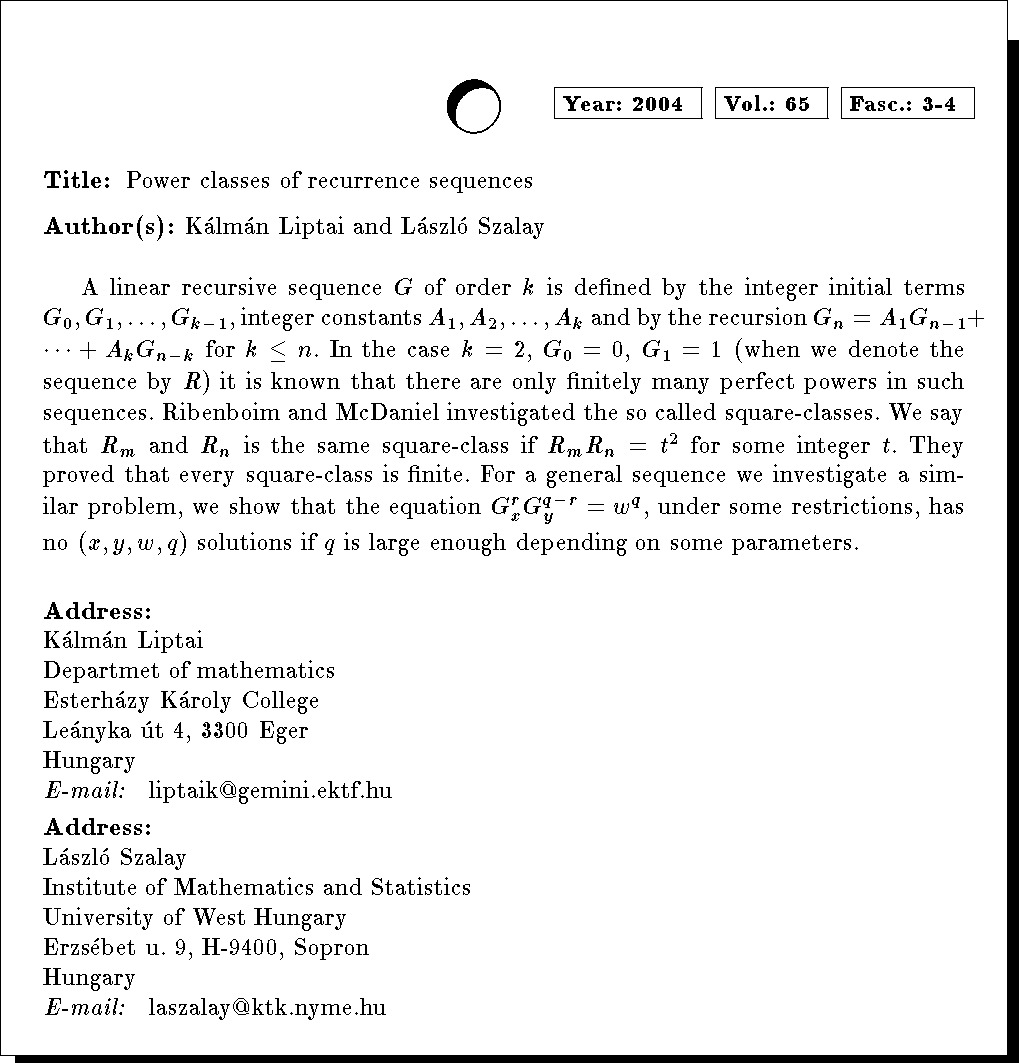 Mathematics Subject Classification: 11B37, 11D61, 11J86