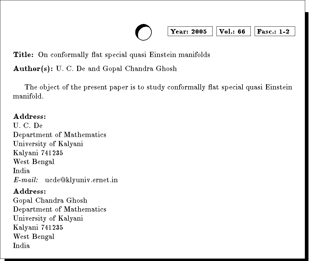 Keywords: special quasi Einstein manifold, conformally flat manifold